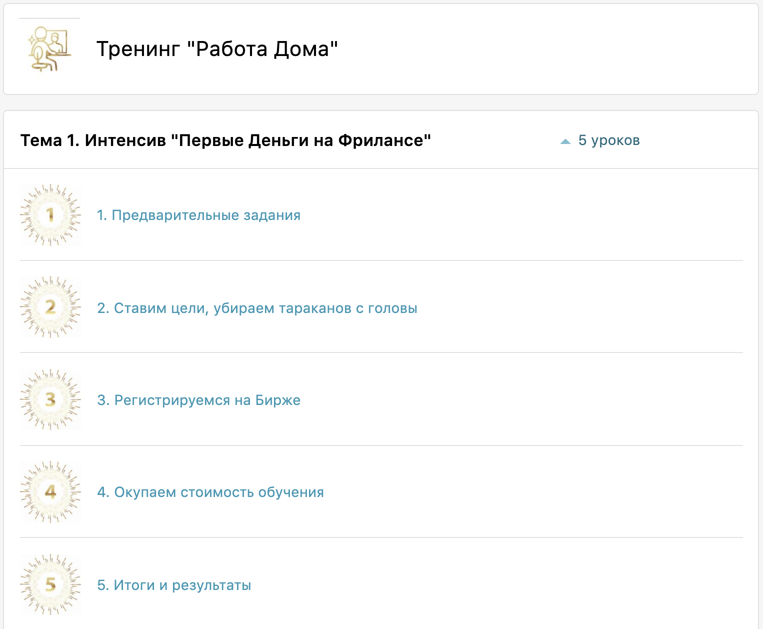 С каждым уроком Вы погружаетесь в тему, используя наши рекомендации. Вы берете первые заказы и зарабатываете свои первые деньги в Интернете.